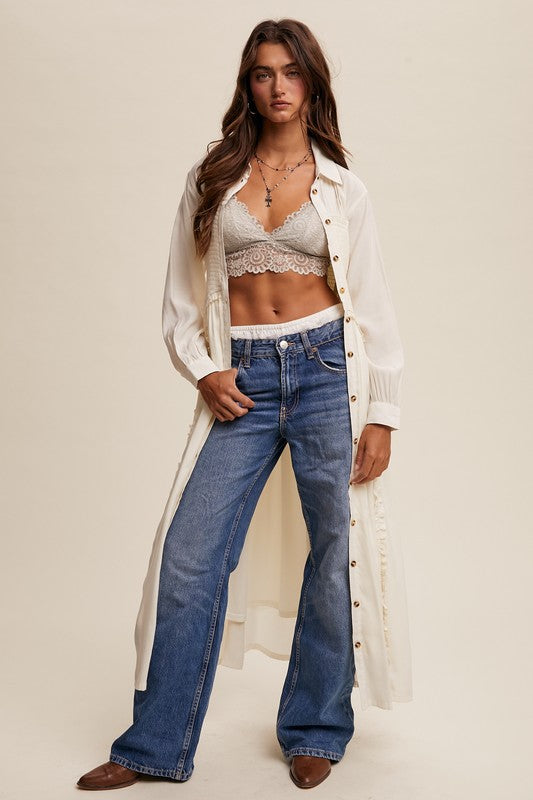 The Smocked Bodice Button Down Ruffle Maxi Shirt Dress-The Aly